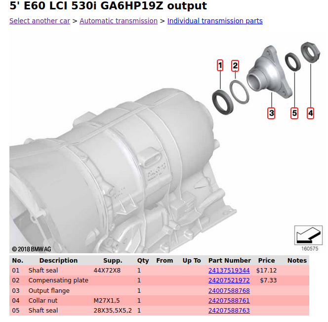 3310 7 560042(Requires replacement of output drive flanges) - E60 550i 3.38